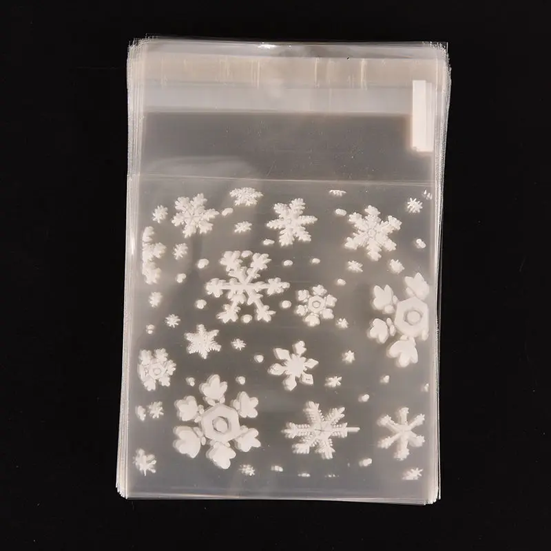100pcs Christmas Snowflake Print Desk Organizer Clip Holder Bags Candy Bag self-adhesive gift Bags